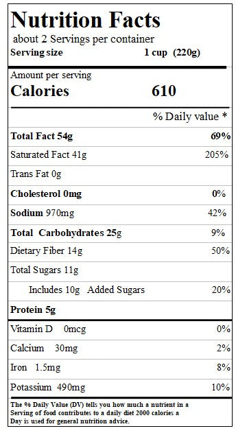 coconut milk, potato , onion, chili oil, sugar, refined soybean oil, massaman curry pate ( shallot, dried red chili, seeds) coriander seeds, cumin powder) peanut, spices( cardamon, nutmeg, clove) salt, acidity regulator : citric acid.