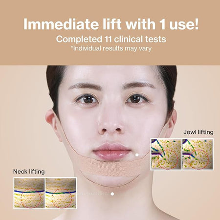 Physically pulls and weakens the double chin and functionally reduces fat. It is made of 100% water-soluble hydrogel applied to cotton threads (no adhesive ingredients are used), which ensures the safety of the product for even the most sensitive skin.