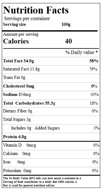 wheat flour, edible vegetable oil, corn starch, rye, black truffle compound seasoning ( contains blak truffle0.023) ( 1.43%) edible salt, sodium bicarbonate, yeast used for food processing , butter, calcium carbonate