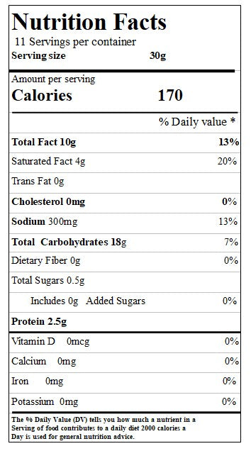 wheat flour, edible vegetable oil, corn starch, butter tricholoma matsutake flavero compound seasoning , chia seed , sodium bicarbonate, yeast edible salt, sodium bicarbonate, yeast used for food processing, butter, calcium carbonate