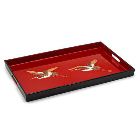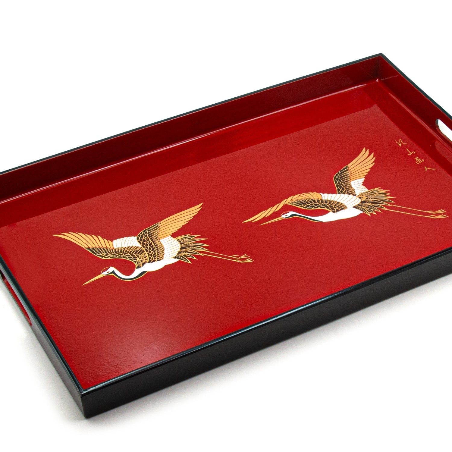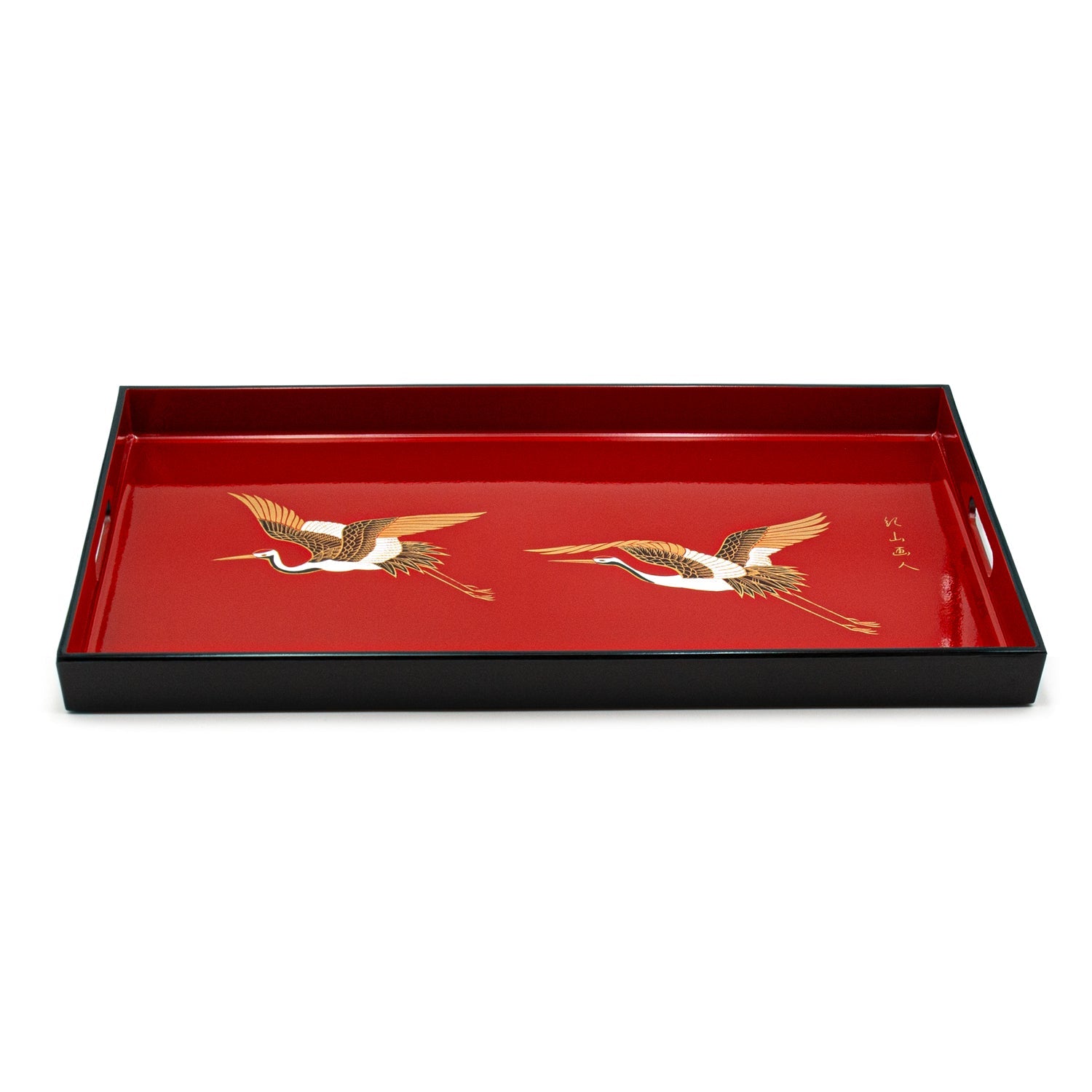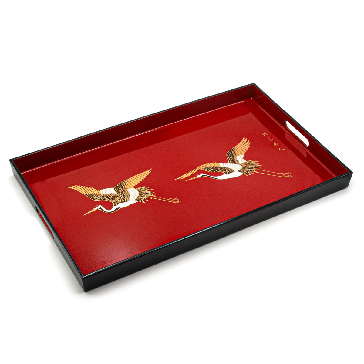 Japanese Lacquer Tray Red with Hawks - it can be used as decoration or serving tray for special guests!
